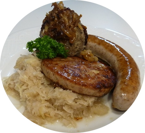 Pfälzer Teller (Bratwurst, Leberknödel, Saumagen)