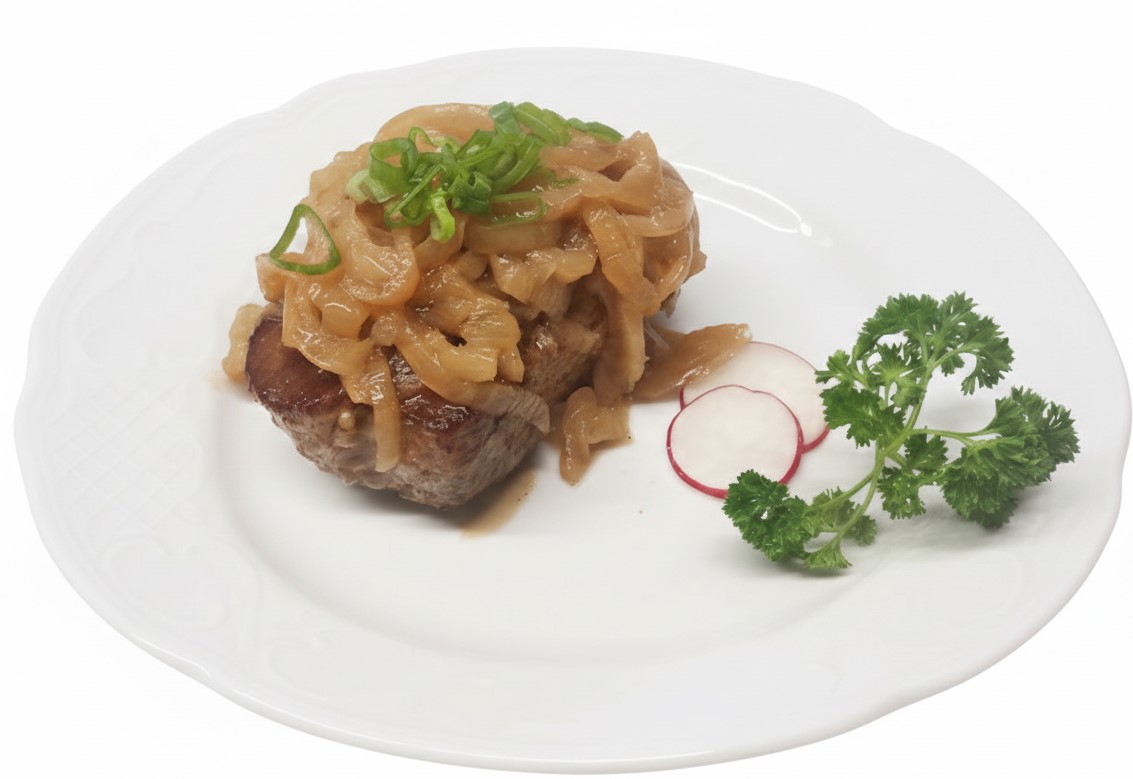 mit gedünsteten Zwiebeln